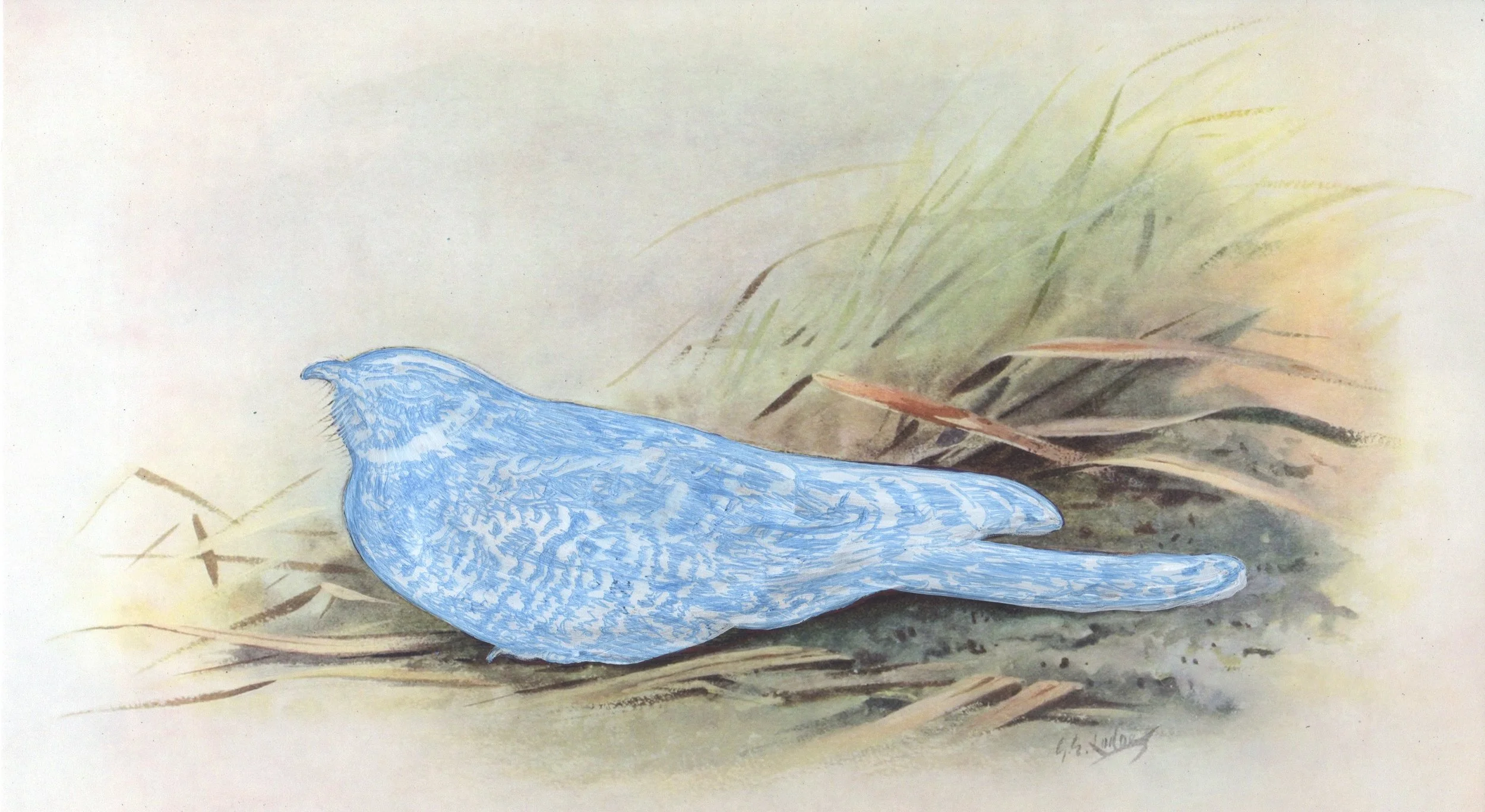 Gabrielle Jennings, Lost Birds Series, Jamaican Pauraque, Siphonorhis americana, last seen 1860, 2024, ink and acrylic on digital print on matte paper, 6x11”
