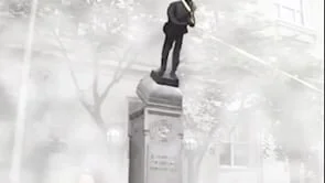 Toppled Monuments is a collaboration of sorts - the video imagery is my response to original music, lyrics, and voice by anonymous artists. Paintings were made using found internet video of toppling monuments as source material.